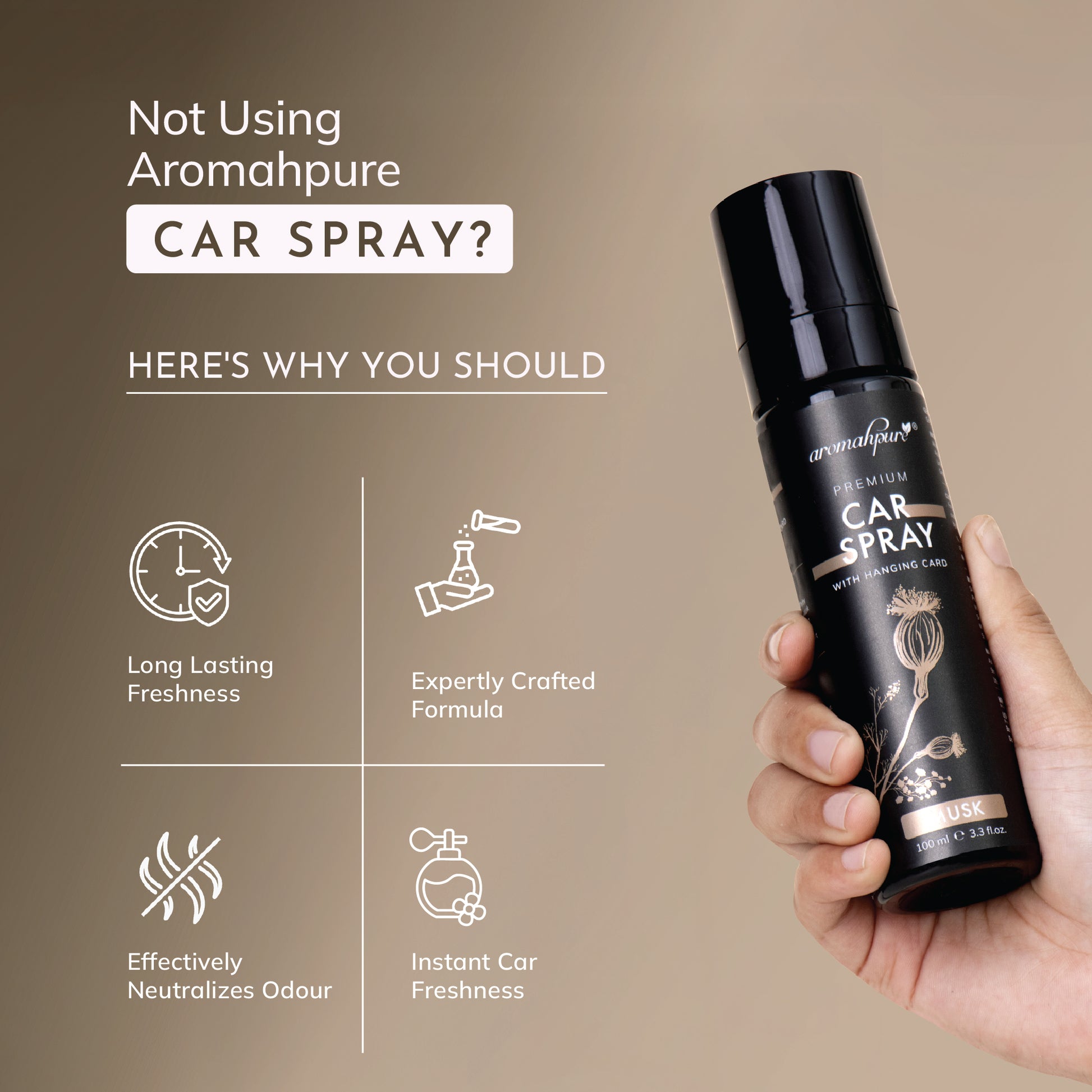 Musk Car Perfume Spray with Hanging Card | 100ml | Long Lasting 800+ Sprays Car Fresheners | IFRA-Compliant Fragrance &Travel Friendly Car Air Freshener| CFC Free & Fast Acting Formula